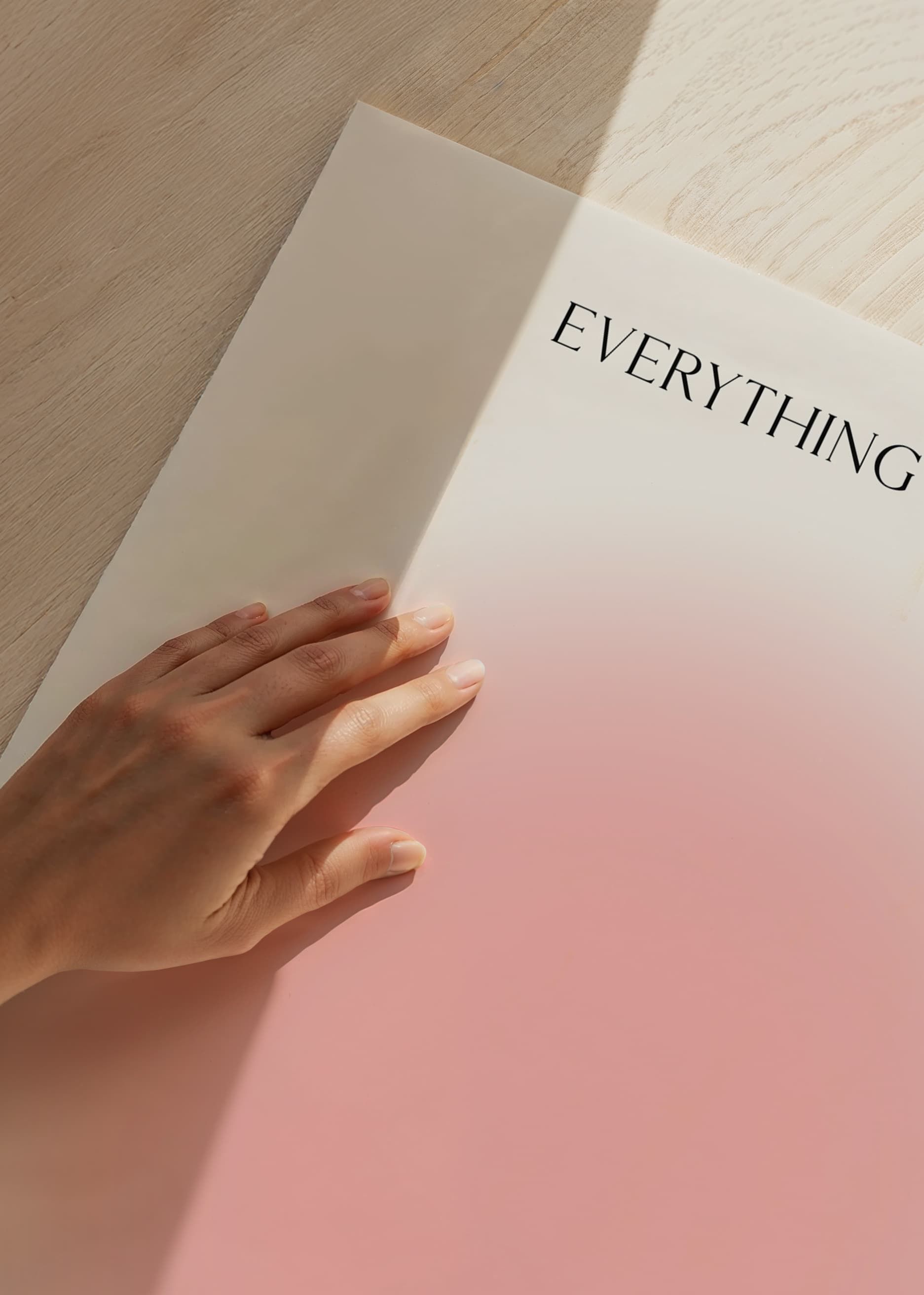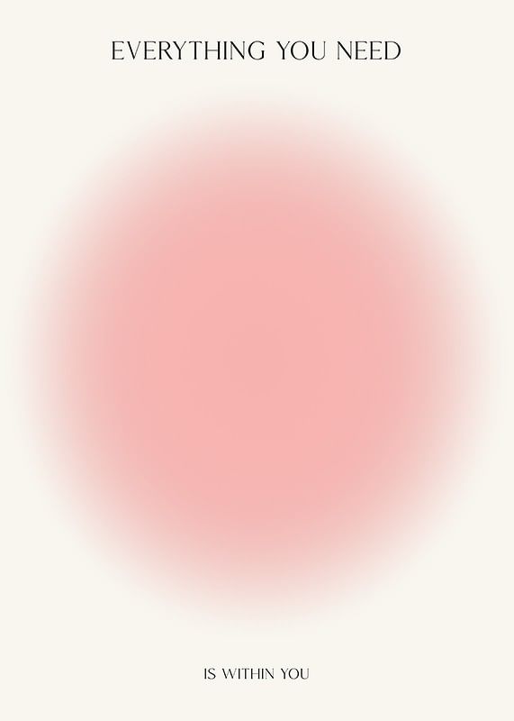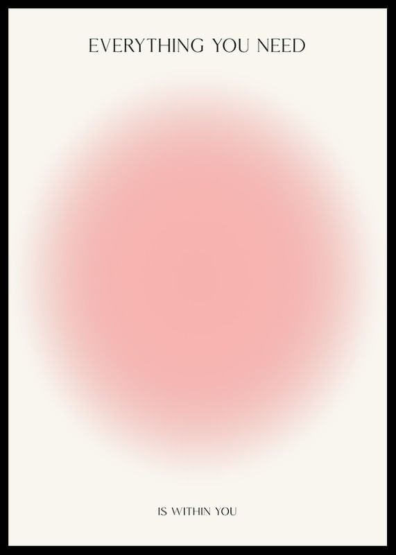 Das Motiv besteht aus einem diffusen rosa Kreis auf warmweißem Hintergrund, ergänzt durch den Text „Everything You Need Is Within You“ oben und unten. Die schlichte, weiche Form erzeugt einen ruhigen Ausdruck, der sich beispielsweise für Schlafzimmer, Arbeitszimmer oder Meditationsecken eignet. Dieses Poster verleiht dem Raum eine friedliche und besinnliche Atmosphäre.