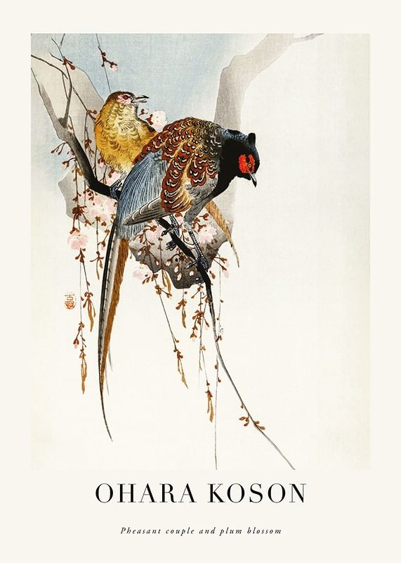 Pheasant Couple And Plum Blossom By Ohara Koson Poster