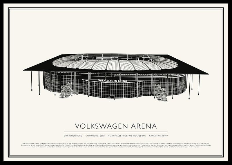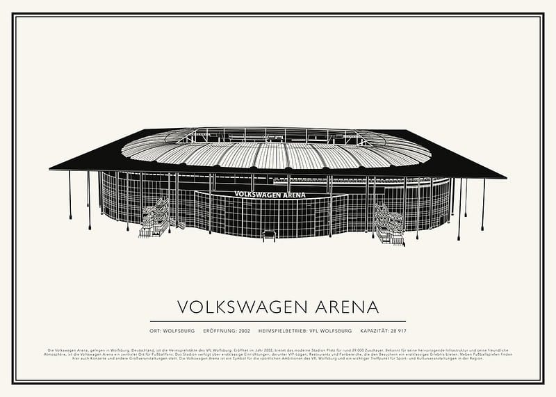 Die Volkswagen Arena, gelegen in Wolfsburg, Deutschland, ist die Heimspielstätte des VfL Wolfsburg. Eröffnet im Jahr 2002, bietet das moderne Stadion Platz für rund 29.000 Zuschauer. Bekannt für seine hervorragende Infrastruktur und seine freundliche Atmosphäre, ist die Volkswagen Arena ein zentraler Ort für Fußballfans. Das Stadion verfügt über erstklassige Einrichtungen, darunter VIP-Logen, Restaurants und Fanbereiche, die den Besuchern ein erstklassiges Erlebnis bieten. Neben Fußballspielen finden hier auch Konzerte und andere Großveranstaltungen statt. Die Volkswagen Arena ist ein Symbol für die sportlichen Ambitionen des VfL Wolfsburg und ein wichtiger Treffpunkt für Sport- und Kulturveranstaltungen in der Region.