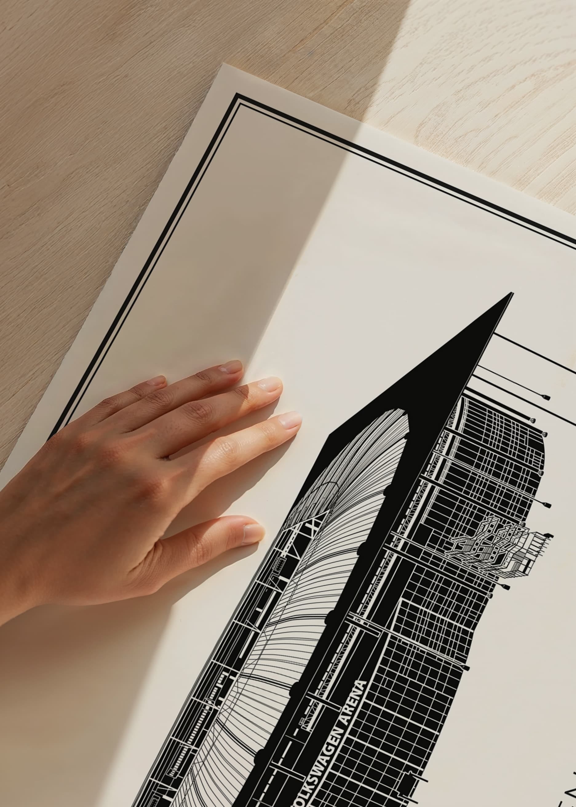 Volkswagen Arena Vintage Skizze 02 DE Poster