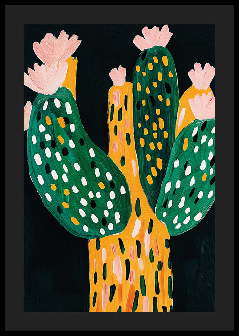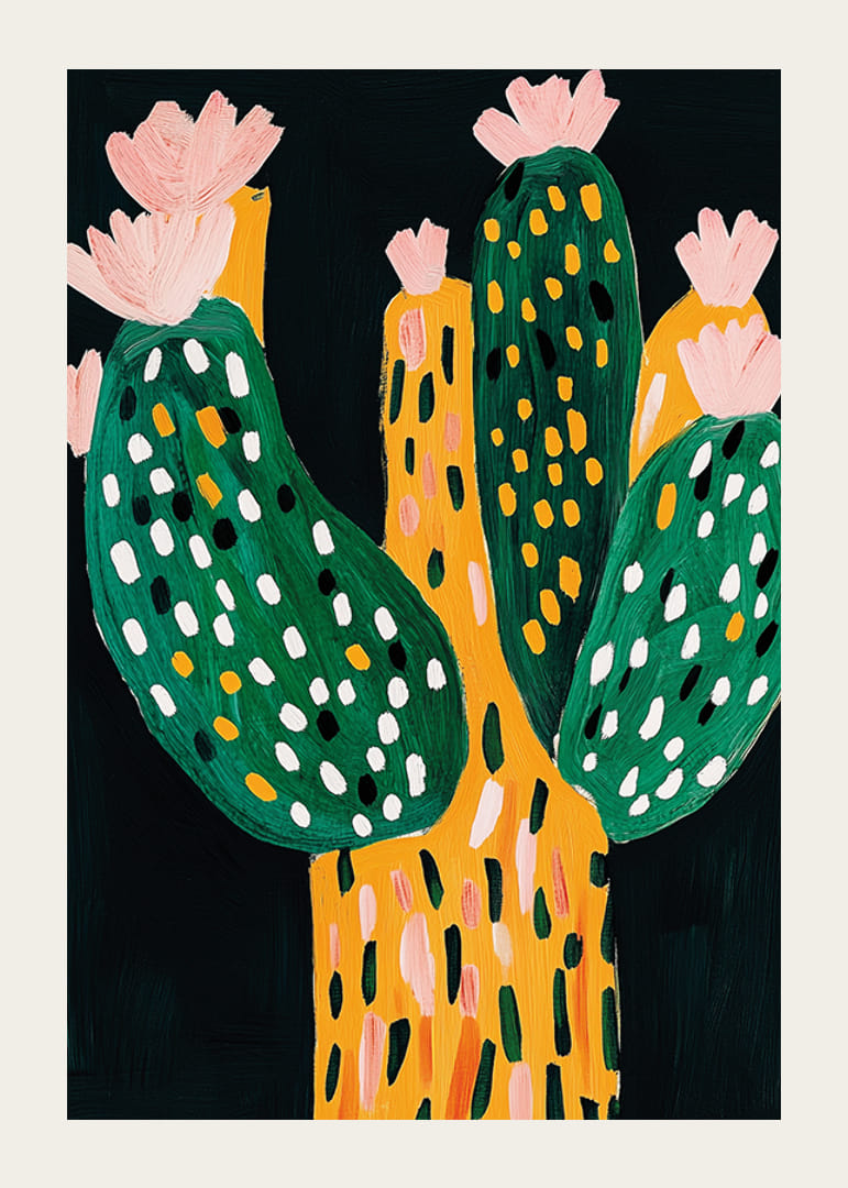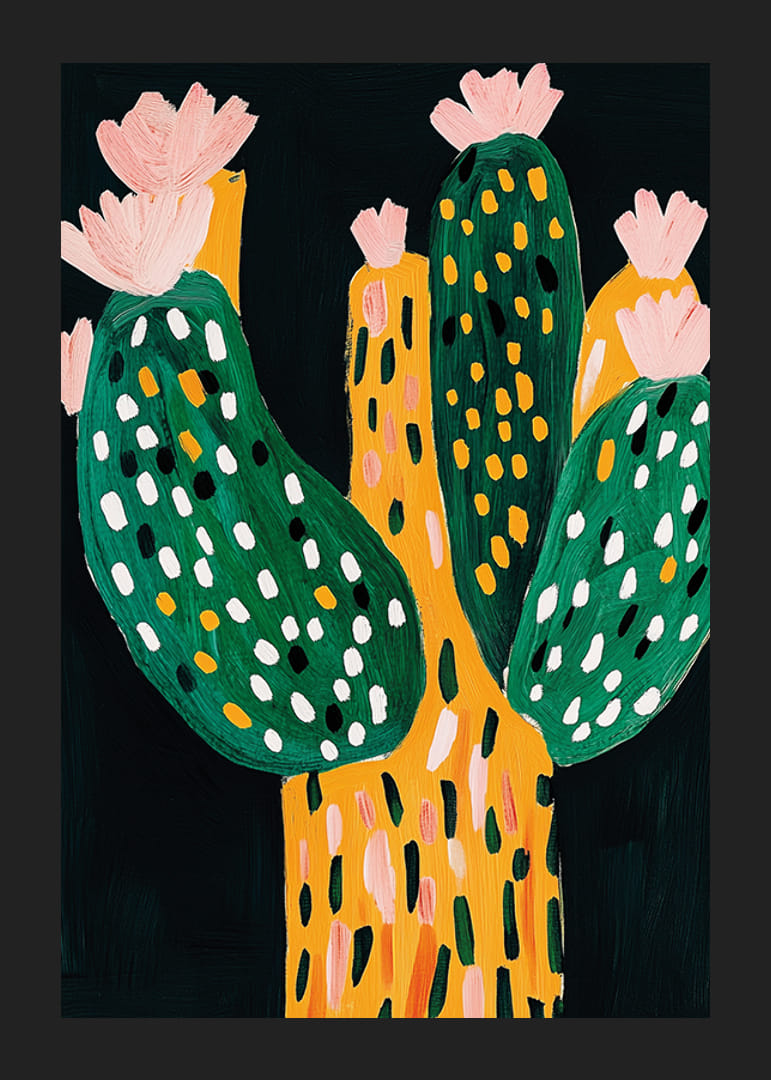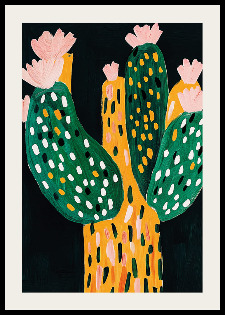 Entdecken Sie die Schönheit dieses farbenfrohen Kaktusposters! Mit seinen lebendigen Grün- und Orangetönen verleiht es jeder Wand einen Hauch natürlicher Verspieltheit.